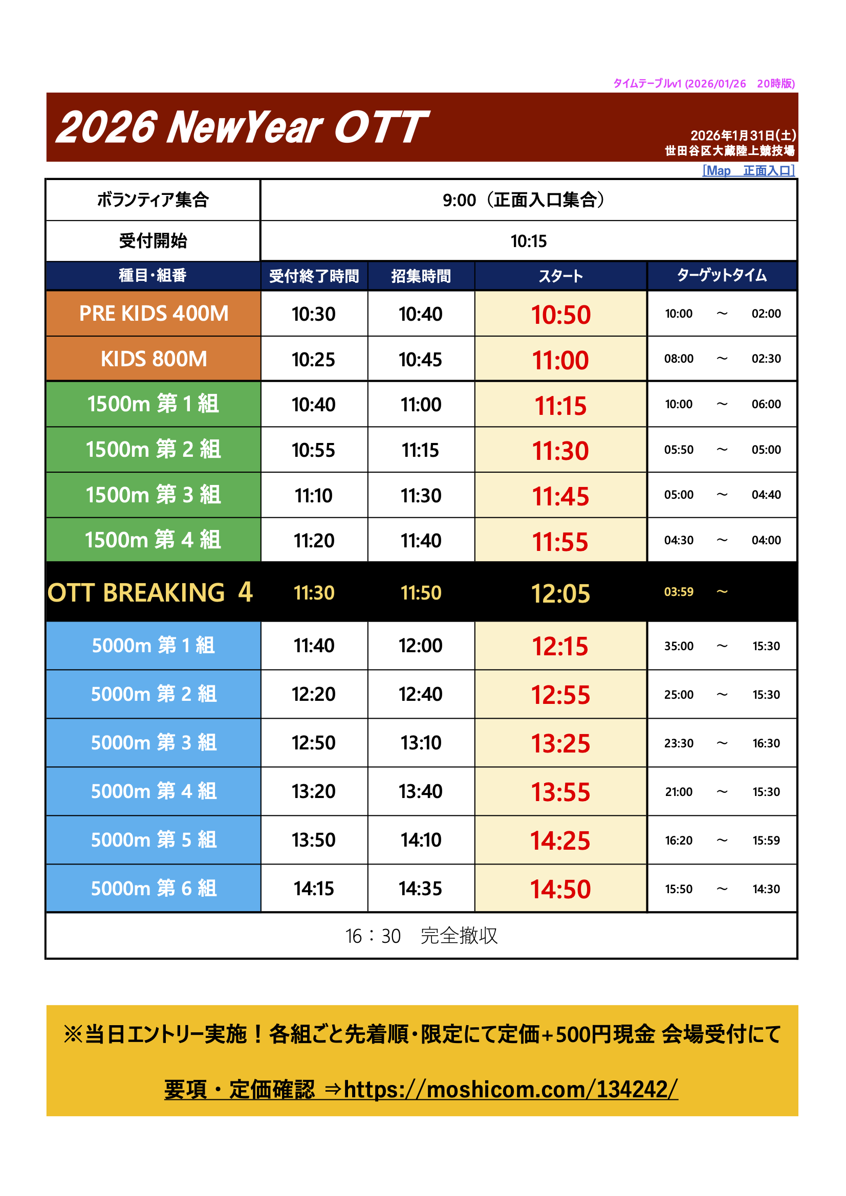 ▶第36回 オトナのタイムトライアル ・2025年12月20日(土曜日) ・駒沢オリンピック公園総合運動場陸上競技場(ランナー受付はAゲート) ▶第37回 オトナのタイムトライアル 2026年1月31日(土曜日)世田谷区大蔵競技場 ▶[追加!!]第38回 オトナのタイムトライアル ・2025年2月23日(月・祝) ・駒沢オリンピック公園総合運動場陸上競技場(ランナー受付はAゲート) ▶第38回⇒39回 オトナのタイムトライアル 2026年3月29日(日曜日)世田谷区大蔵競技場 ※雨天決行・荒天中止、※中止の場合は当日朝にSNSにて発表。 |